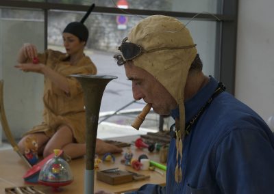 Sur une création musicale originale de Jean-Nicolas Mathieu, la Dea ex machina, interprétée par Anne Marion, invite le spectateur à se laisser porter par la poésie onirique, mécanique, et mouvementée de l’univers plastique de François Klein.