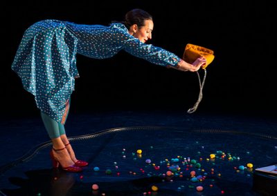 À partir de cette situation très simple, la danseuse déploie son univers. Fait entrer l’objet dans la danse, dessine un territoire, attire et détend l’attention, convoque l’imaginaire, sculpte les détails, détourne les images. Peu à peu, tandis que le corps traverse les paysages, des objets, des animaux s’invitent, en rêve, en corps, et encore, et encore…