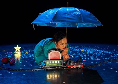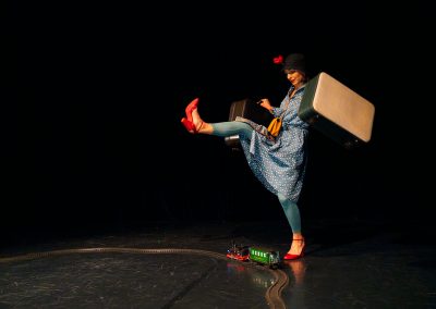 Sommes-nous sur le quai avec elle ? Sommes-nous dans le train ? Sommes-nous déjà loin ? L’espace est une question. La danse un point d’interrogation.